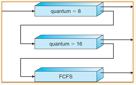 3. 최하위 큐 (Lowest-level Queue) : 우선순위가 가장 낮은 프로세스들을 위한 큐입니다. 일반적으로 First-In-First-Out (FIFO) 스케줄링을 사용합니다.